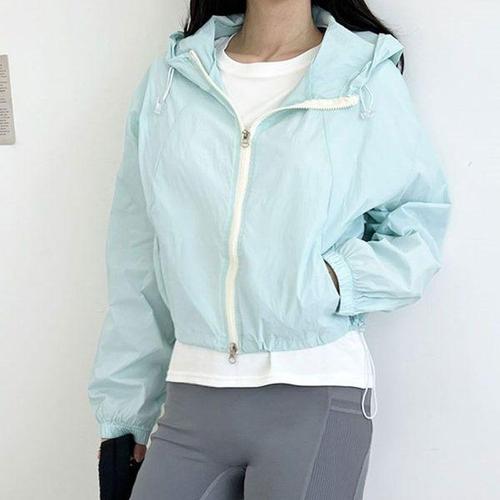 [에이치플러스몰]여성 크롭 후드스트링 투웨이 바람막이 나일론 자켓