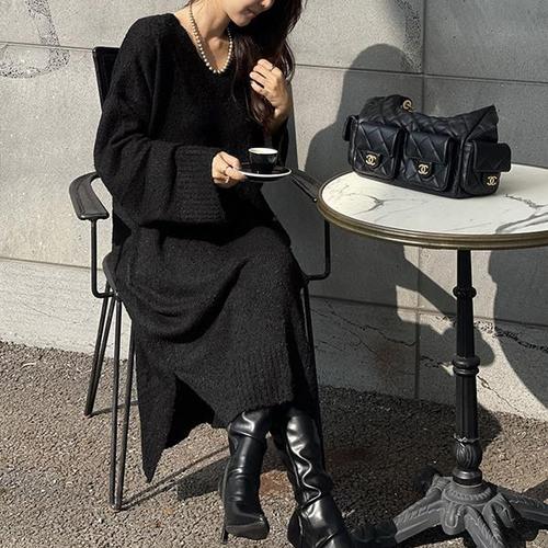 [난닝구]키펠드 나시원피스브이넥니트세트