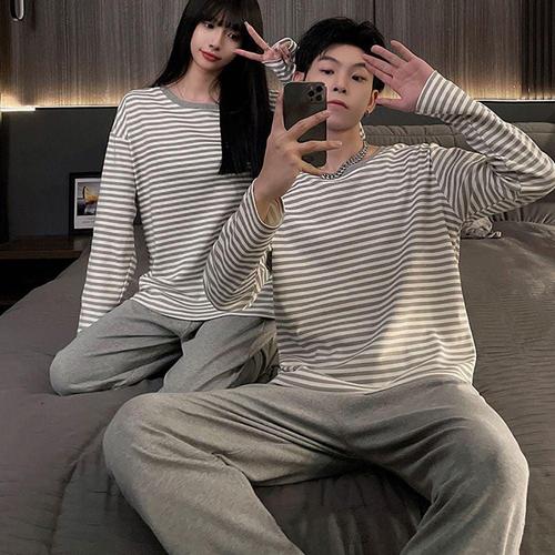 신혼여행 홈웨어 세트 스트라이프 커플잠옷 남여 파자마 파티
