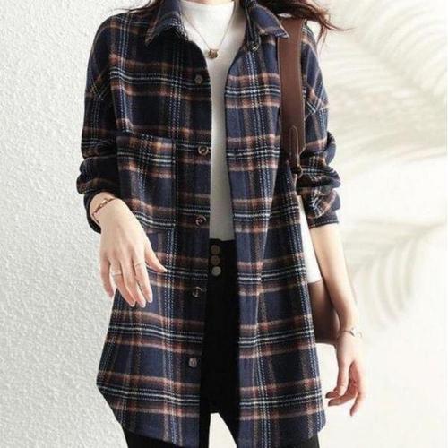 [셀러허브_여성트랜드패션]체크 패턴 기모 데일리 롱셔츠 셔츠 간절기 남방 겨울