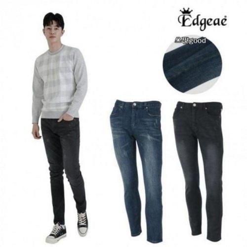 [엠클로]남자 빅사이즈 진청 흑청 난스판 테이퍼드핏 크롭 기모 반밴딩 데님 청바지 28-38