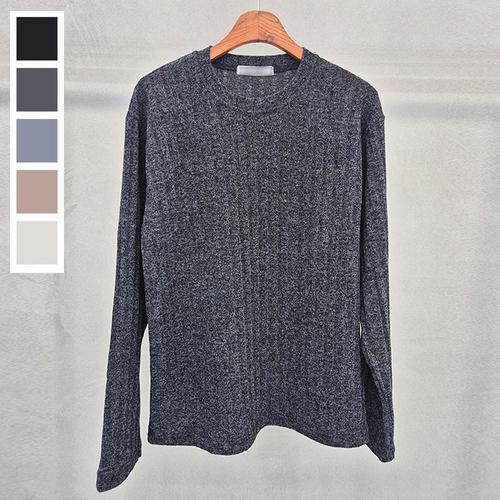 [리빌모아]남자 베이직 왕골지 라운드 긴팔 니트티 5C-KN-Q108-차콜