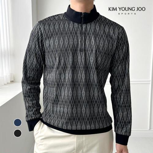 [김영주 스포츠]김영주스포츠 남성 기모 티셔츠 반집업 스판 긴팔티 골프 등산 데일리티 KRMT6108