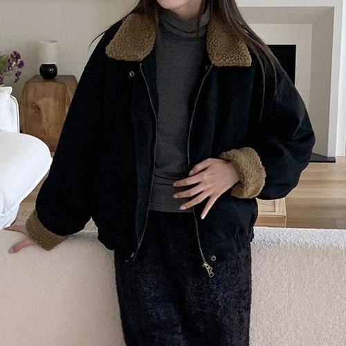 [삐까삐까]양털안감 스웨이드 블루종 점퍼 오버핏 덤블 카라자켓 여성 겨울 아우터