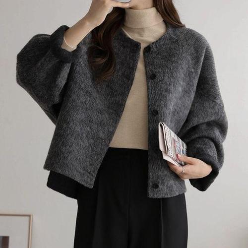 [삐까삐까]핸드메이드 울자켓 알파카 라운드넥 노카라 루즈핏 고급 숏 자켓 겨울 아우터
