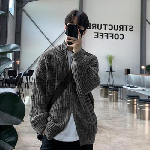 남성 가을 겨울 니트 가디건 스웨터 와이드 긴팔 캐주얼 코트 오버핏 데일리 점퍼 아우터HF