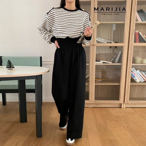 [마리지아]기모 스트라이프 맨투맨+와이드 팬츠 세트 MSTB9041