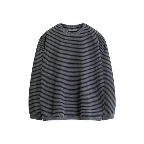 와이드 단가라 스트라이프 패턴 맨투맨 긴팔 티 WFLQCOR