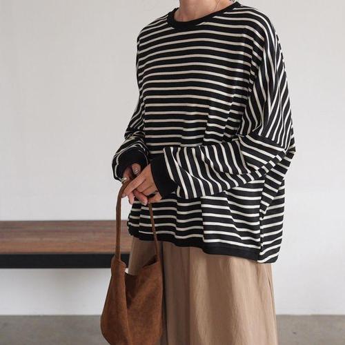 킹앤조이 마레 얇은 스트라이프 루즈핏 헤비코튼 긴팔티