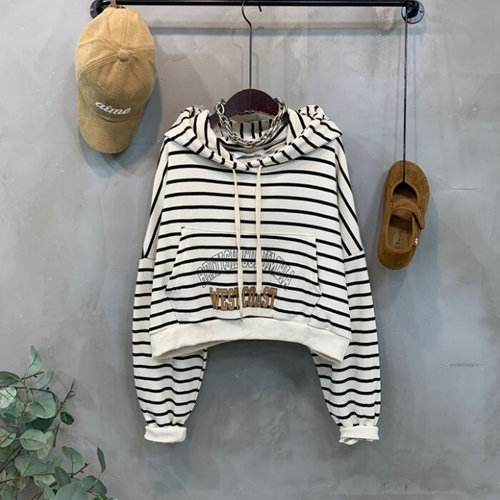 씨샵인더룸 / 웨스트 레터링 스트라이프 크롭 후드 맨투맨 2color
