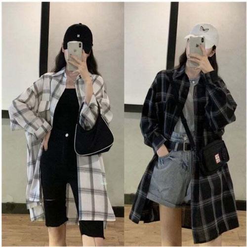 [셀럽하우스]체크 SJYF0735 블랙 롱셔츠 화이트