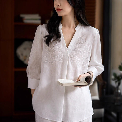 제로투올샵2 / 슬림핏 통기성 린넨 셔츠 화이트 S