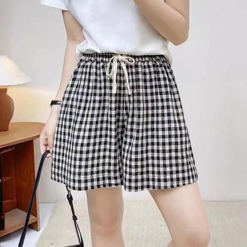 레이디스 러블리한데일리 허리밴딩 그리드패턴 숏팬츠