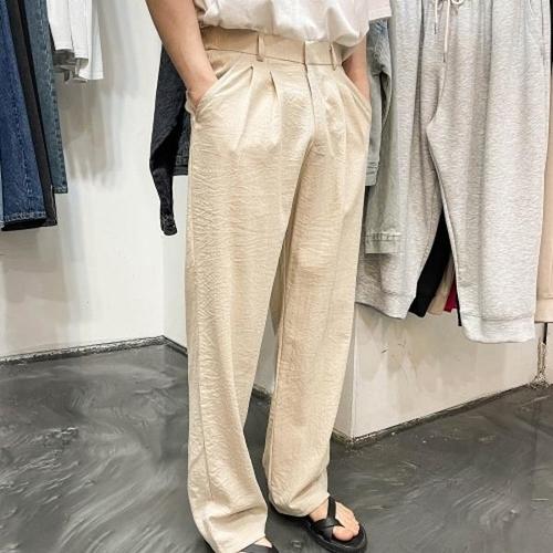 [옷자락] 남자 아이스팬츠 핀턱 루즈 와이드 스판 여름 슬랙스