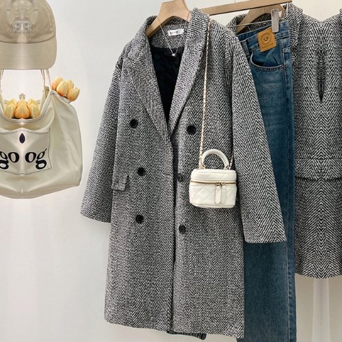 [블랙퀸] 헤이보 헤링본 루즈핏 코트 blk004153