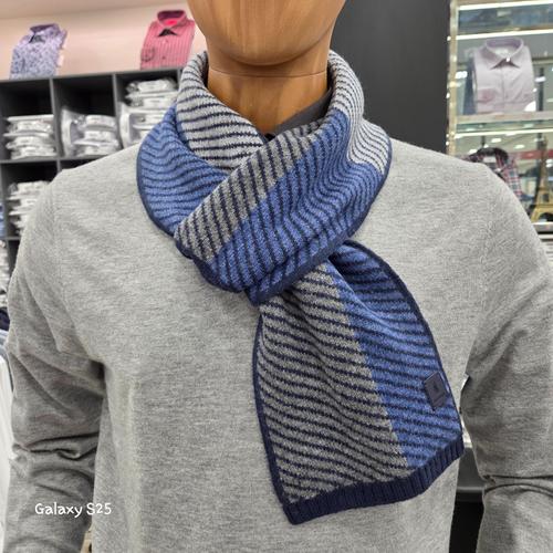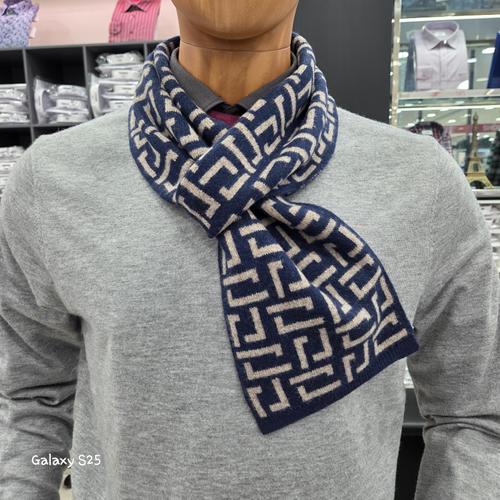 [레노마셔츠]캐시미어100 기하학 분할 패턴 실크보다 부드럽고 따뜻한 머플러BPFTM1007BU_GN