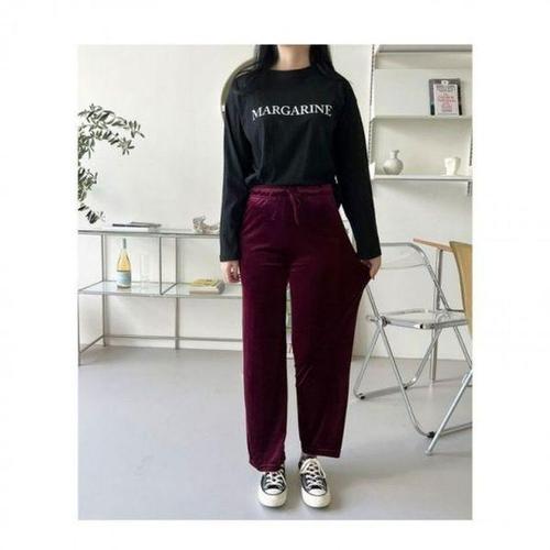 [에이치플러스몰]스판팬츠 겨울 홈웨어 편한바지 와이드 허리밴딩 고무