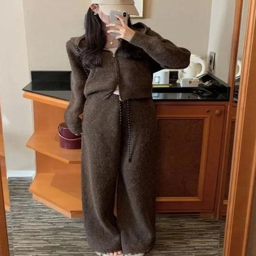 [옷자락]여자 니트팬츠 통 나그랑 후드가디건 세트