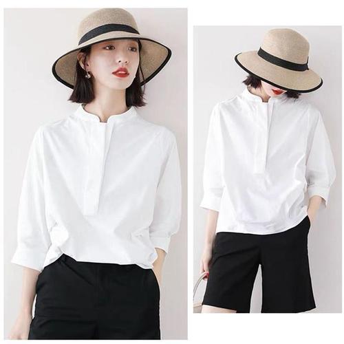 [룽스]칠부 소매 셔츠 화이트 패션 블라우스