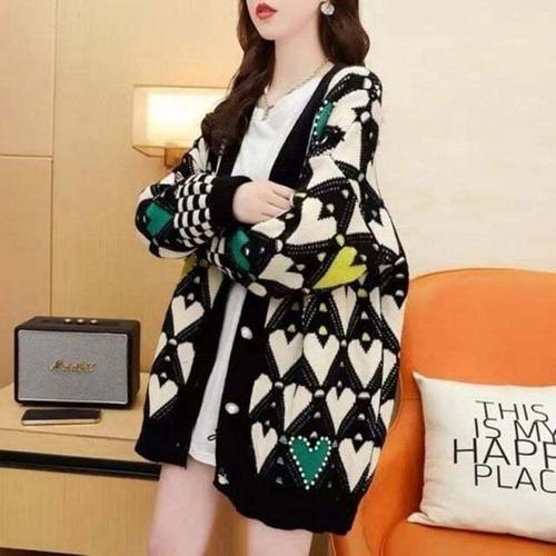 [셀럽하우스]니트 LXSE7296 하트남발 하프 가디건 오버핏 코디피셜 귀여운가