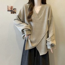 플러스사이즈 긴팔 티셔츠 슬림 실루엣 체형 커버 우아한 순색 트렌디한 데일리 오버핏 긴팔