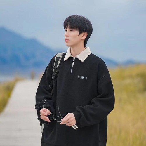제로투올샵2 / 남성 봄 가을 복고풍 배색 카라 루즈핏 티셔츠 블랙 m