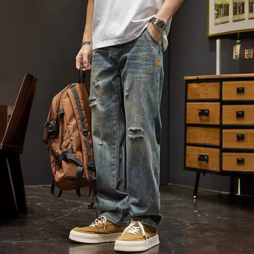 [모로엠]남자 빅사이즈 캐주얼 와이드 레그 찢청 데님 팬츠 DMS-JEA-Q4152138