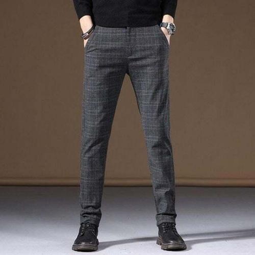 기모 일자 스판 남자 체크 무늬 정장 바지 남성 겨울 양복 신사 회사 바지 중년 40대 50대
