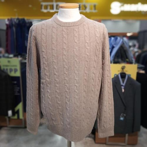 [바쏘옴므] WSZ3GW03ADE 25년 다크베이지 혼방 꽈배기 라운드 니트