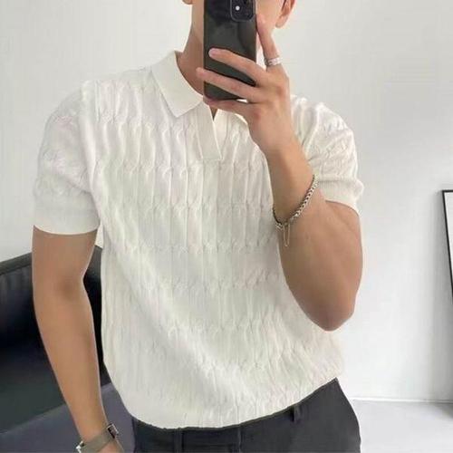 BLEO 남자 여름 브이넥 기본 무지 반팔 니트 카라티