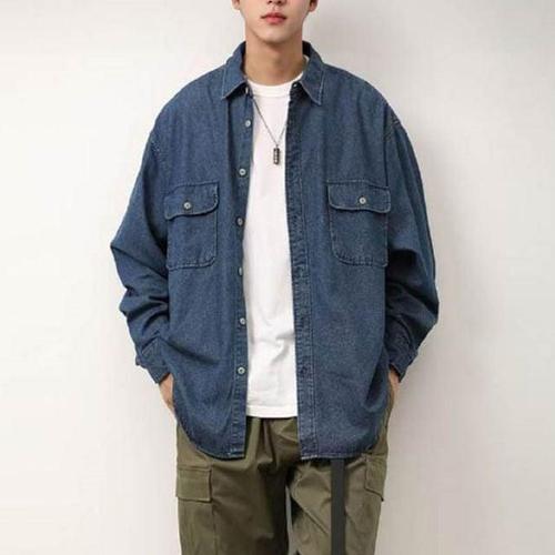 ANYOU 남성 데님셔츠 캐주얼남성데님코트 빅사이즈 루즈핏 데님셔츠