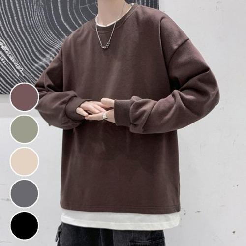 [엄지척]남성 페이크 레이어드 스타일 라운드넥 맨투맨 티셔츠_20458563_667501