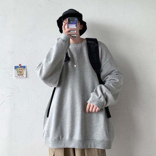 라운드 데일리 레이어드 스웨트셔츠 남성 맨투맨 티셔츠 오버핏 루즈핏 가을