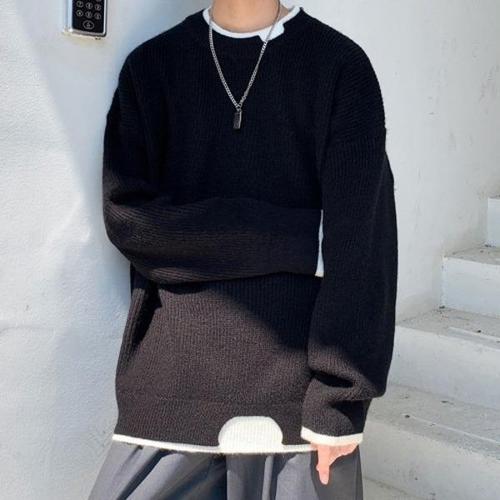 [엄지척]남성 2컬러 도톰 가을 겨울무드 레이어드 니트 맨투맨_20483246_667501