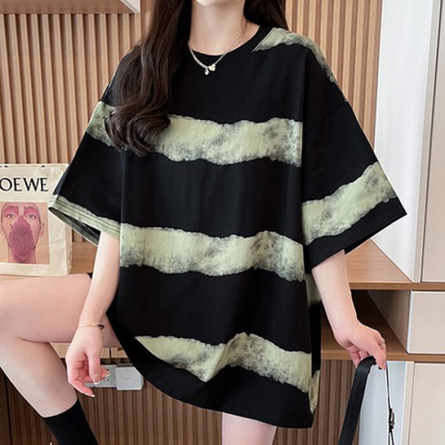 나바바 / NT2389 단가라 배색 포인트 루즈핏 반팔 티셔츠