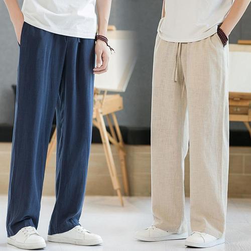 남성 통기성 배기 린넨 허리스트링 팬츠