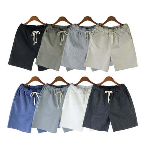 JUSTFEELING 1+1 남성 허리밴딩 면마반바지 롤업 캐주얼 얇은 린넨 통기성 좋은 5부팬츠 무지 여름반바지 남자