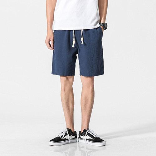 WEIHAN 남성 리넨 반바지 데일리 통기성 면 마 5부 팬츠 캐주얼 와이드 반바지