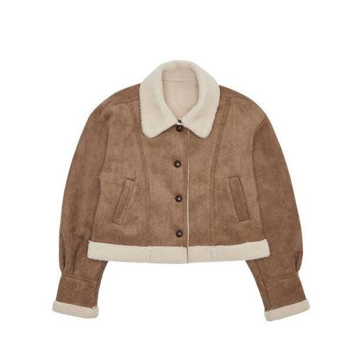 [르샵]하이넥 크롭 버클 무스탕 자켓 (DP4JK002A)