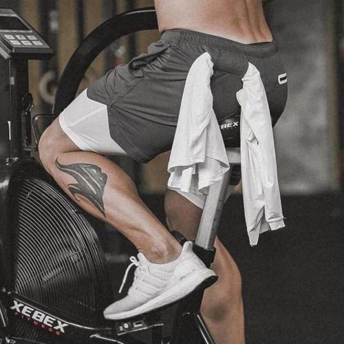 남성 여름 워터파크 이중 레깅스 스포츠 반바지 작업복티셔츠 땀복운동