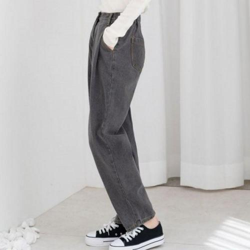 [XBI30786]배기청바지 흰색발목양말 핀턱 청바지 중청 HS2