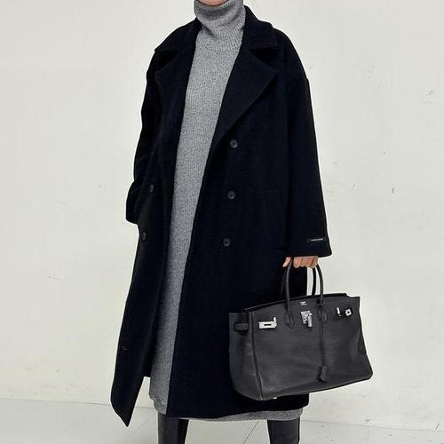 여성 겨울 울코트 브라운 롱코트 오버핏 더블버튼 하이퀄리티