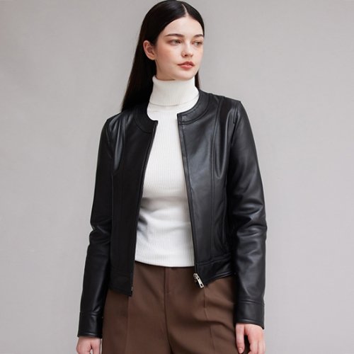 [보스룸]남자 데일리 양가죽자켓 슬림핏 자연광택 19L 와이어넥 차이나 가죽자켓
