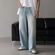 베이직바이블 남자 밴딩 와이드 데님 팬츠 여름 브러쉬 워싱 진청 연청 흑청