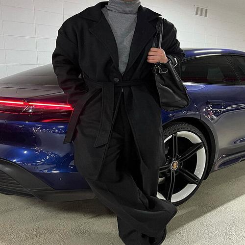 [쿼터]남자 뉴욕 감성 로브 가운 오버핏 울 싱글 롱코트 3color