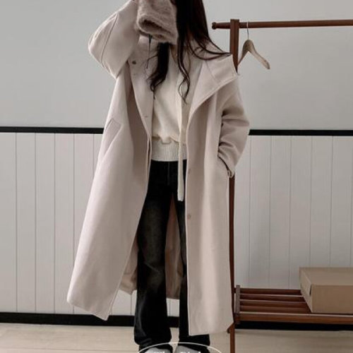 슈팅스타 / 카라넥 루즈핏 허리 스트랩 베이직 심플 롱 코트