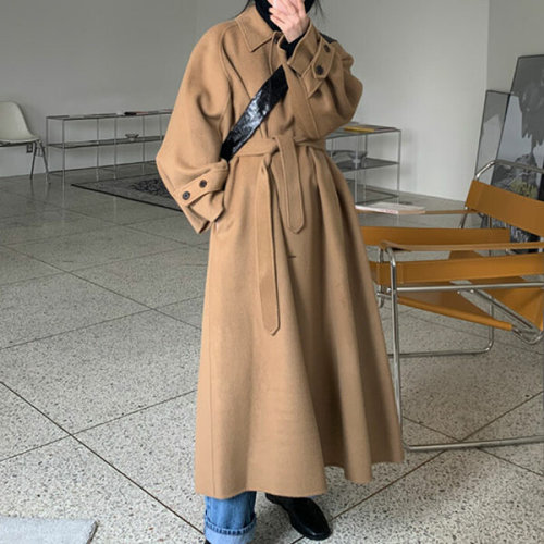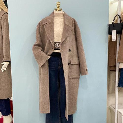 [원스톤][자체생산][기획] 원스톤 모직 벨트 코트 1color 롱 따뜻한 겨울 롱 오버핏 남친룩 크리스마스
