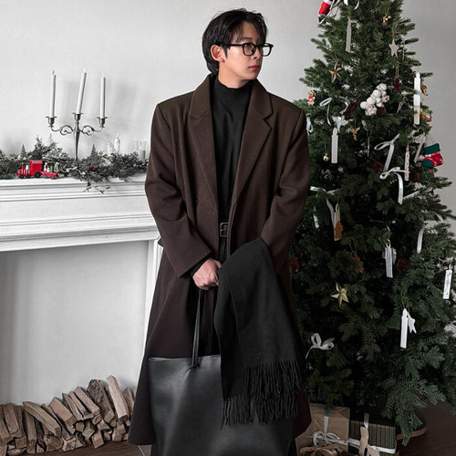 Style Dr 남자 프리미엄 고급 따뜻한 빅사이즈 캐시미어 오버핏 롱코트 모직코트
