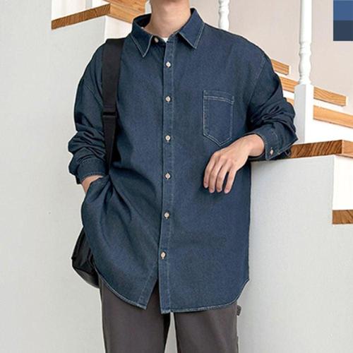남성용 오버핏 데님 캐주얼 셔츠 청남방