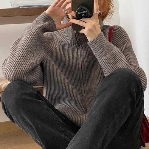 [엄지척]그레이 터틀넥 집업 가디건 편한 캐주얼 데일리 코디_19807309_667501